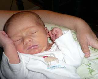 So here are a few snapshots of the little boy. He makes the funniest faces-and he loves to hold his fists up to his ears and cover his eyes while eating. Remember that crazy 3-D ultrasound? Vincent still loves to fan out his hand next to his face in that same pose. Happy 2 weeks old baby boy! We love you!